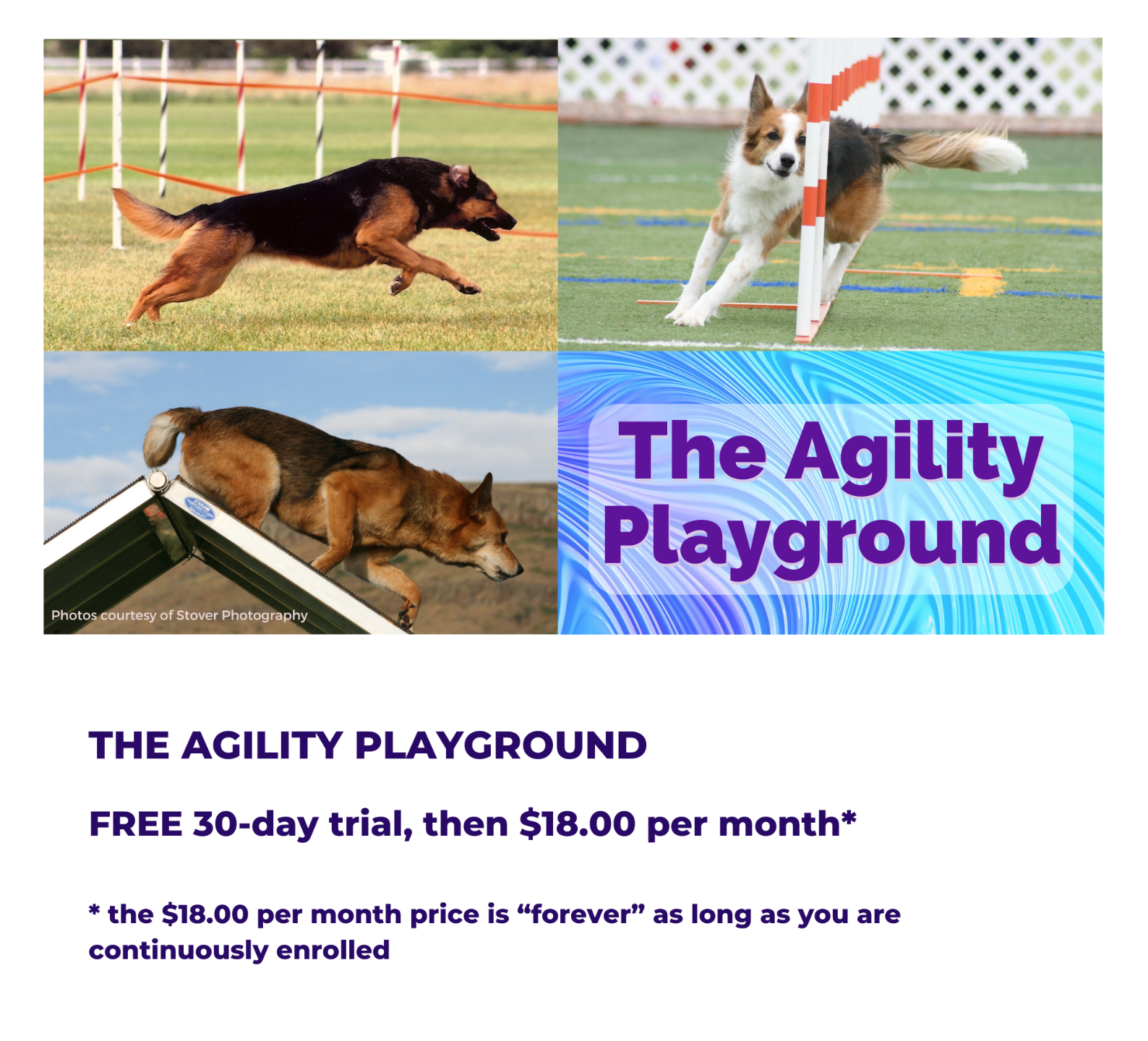 Dog agility handlers face unique challenges. The Agility Playground is designed specifically to help you create a confident and successful agility team. With a combination of online video and text lessons, step-by-step instruction, short but impactful exercises, and relevant group coaching calls, you'll gain the foundations, knowledge, communication skills, and teamwork necessary to excel in competition. Lock in a low monthly price for as long as you stay enrolled and elevate your team's skills!